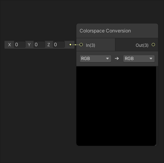 Returns the result of converting the value of input In from one colorspace space to another.