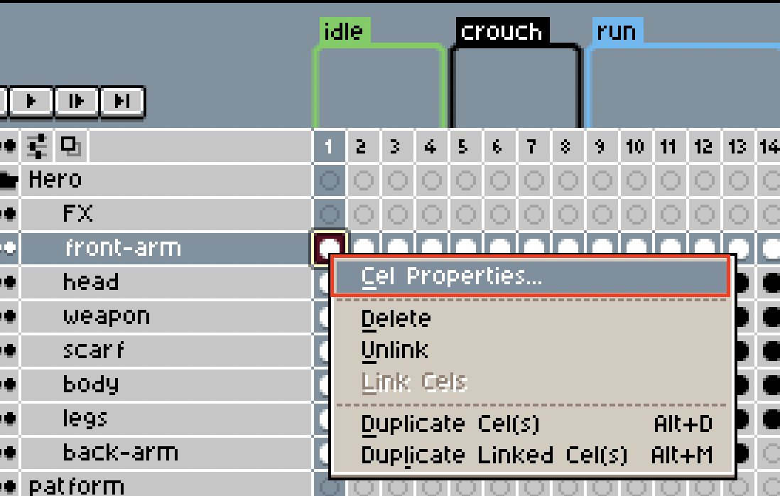 - Right-click on the cel and select Cel Properties.