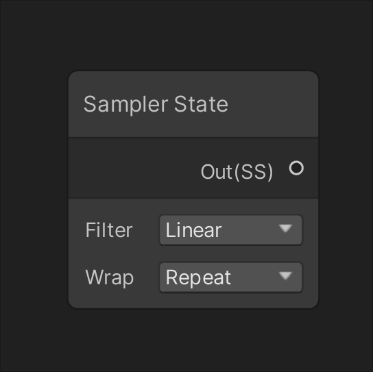A Sampler State node with an output labeled Out(SS). Below it are settings including: Filter set to Linear, Wrap set to Repeat. A Texture Size node with: An input labeled None (Texture) connected to Texture(T2), outputs labeled Width(1), Height(1), Texel Width(1), and Texel Height(1).