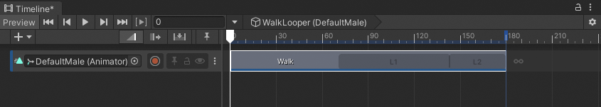For example, an Animation clip is set to loop and its duration is just over twice longer than its source asset. This results in the Walk clip with one full loop and one partial loop.